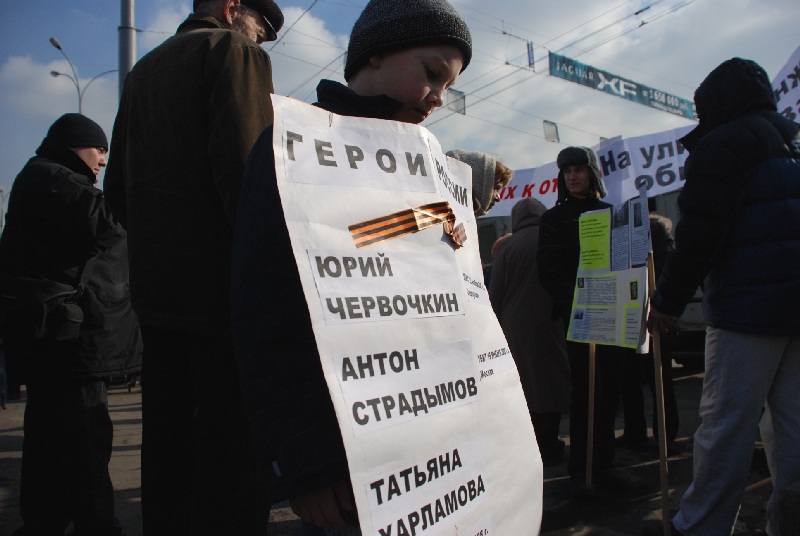 В начале митинга активисты "Молодой гвардии Единой России" устроили провокацию: в середине толпы они разбросали листовки. В агитках содержался призыв сравнить мероприятие с "пятиминуткой ненависти" из романа Джорджа Оруэлла "1984". Однако митингующие призыву не вняли и начали скандировать: "Позор!" Под эти крики "молодогвардейцев" вывели за ограждение сотрудники милиции.